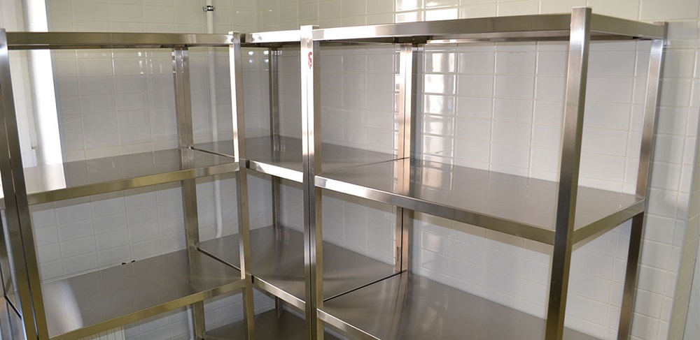 В случае с кухнями с неровными полами, предусмотрены регулируемые ножки. Одна полка оборудования может выдерживать 100-300 килограммов веса. Конструкции из нержавейки с наличием колес, чаще всего размещают в холодильных помещениях, где хранятся и охлаждаются полуфабрикаты, готовые блюда.