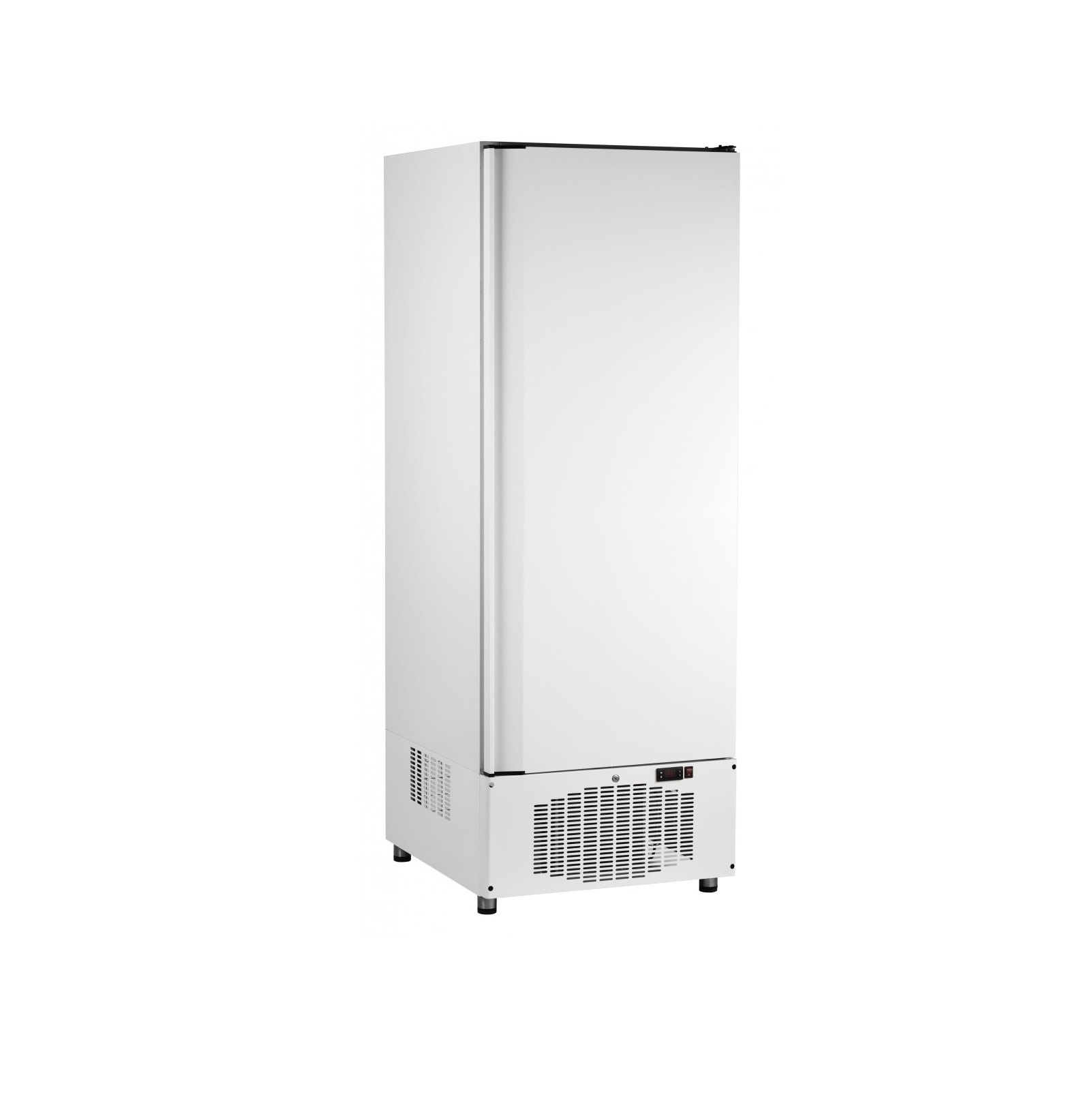 Объем камеры - 520л. Полезный объем - 490л. Вид охлаждения - динамический, используется хладагент фреон R404a. Продукты равномерно охлаждаются на всех полках. Шкаф оборудован четырьмя полками-решетками 545х488мм, каждая из которых выдерживает нагрузку до 40кг. Внутреннее пространство холодильного шкафа оснащено лампой подсветки и вентилятором воздухоохладителя, который автоматически отключается при открывании дверцы. Условия эксплуатации до +43 °C.