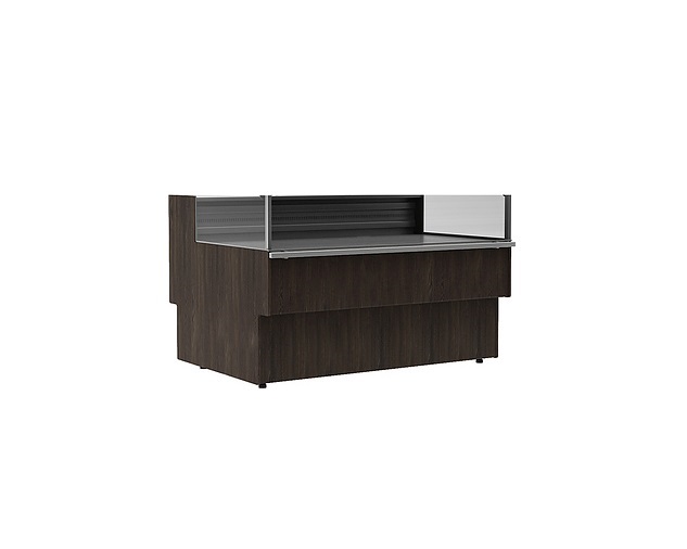 Для улучшения демонстрации продукции витрина оснащена LED-освещением. Остекление низкое (витрина открытого типа). В базовой комплектации оборудование поставляется без боковин (боковины заказываются отдельно). Передняя панель выпускается в нескольких вариантах - окрашенная или нержавеющая сталь, МДФ. Высота ножек регулируется