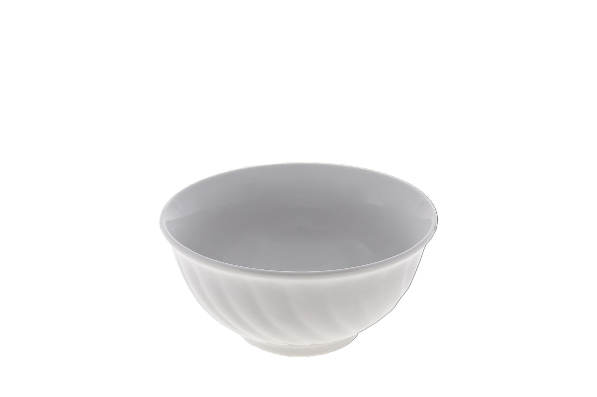 Салатник круглой формы со спиральным рельефом фасона “Голубая роза”.  Объем изделия 400мл, диаметр 134мм, высота 62мм.  Салатник это достаточно универсальная посуда, которая подходит для подачи закусок и салатов, порционных блюд небольшого объема, а также десертов.  Салатник  гармонично дополнит сервировку с использованием других фарфоровых изделий  фасона “Голубая роза” Дулевского завода.  Изделие выполнено в белом цвете без отделки (серия “Бельё”) и может использоваться в кафе и ресторанах с самым разнообразным интерьером.  Это прочная и практичная посуда, которая подходит для мытья вручную и в посудомоечной машине.
