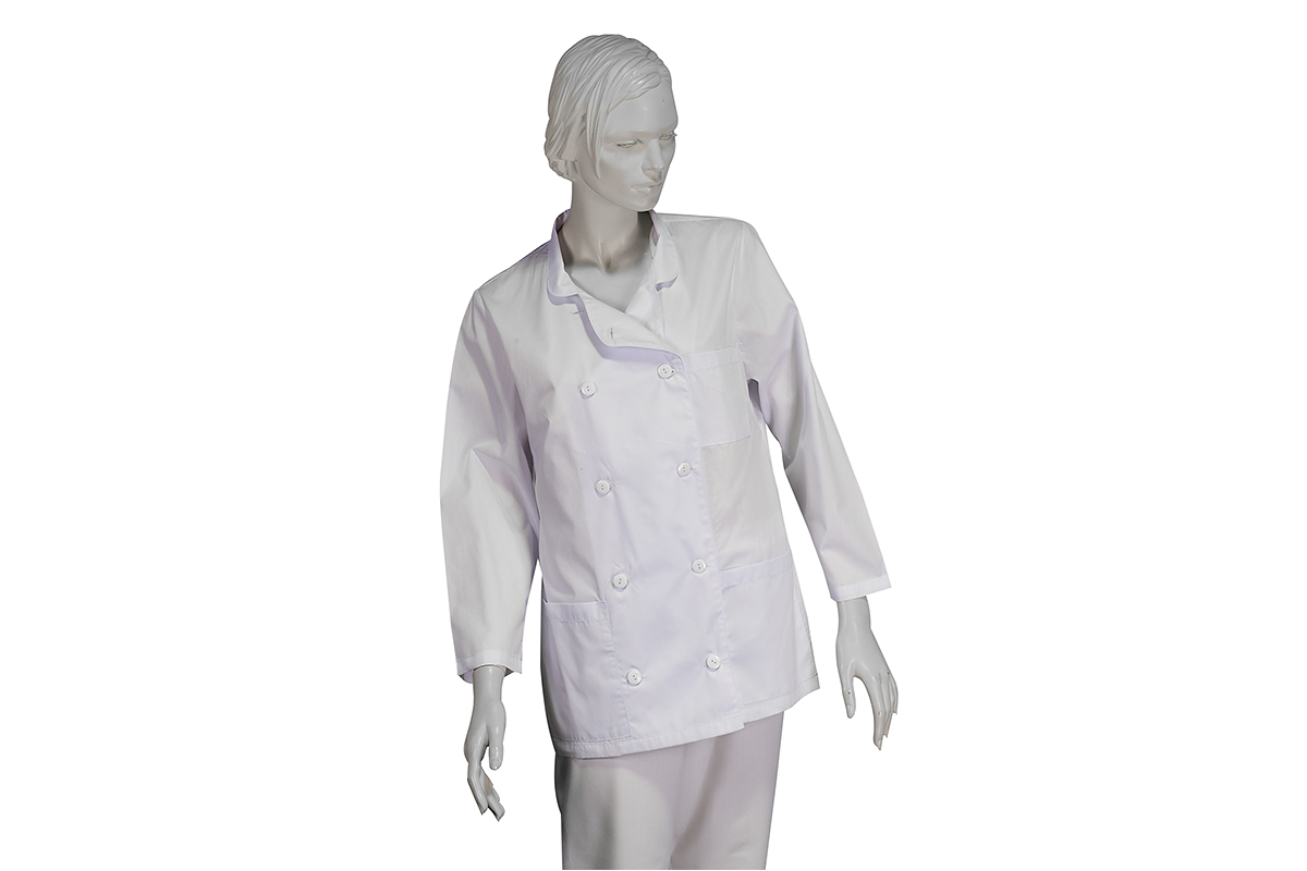Женская поварская куртка белого цвета с длинным рукавом идеально подходит для работы в заведениях общественного питания. Ткань: тиси, состав: 65% полиэстер, 35% хлопок. Размер: 60-62.